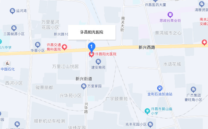 許昌市新興西路與興華路交叉口東南角(南立交 原縣糧局),許昌陽光男科醫(yī)院擅長診治前列腺疾病,功能性障礙,生殖感染,包皮過長、包莖等男科疑難病、常見病等。